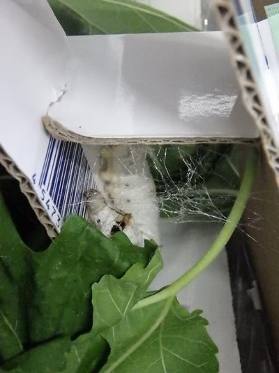 朝、職員が出勤すると数匹ほど繭(まゆ)作りを始めていました。