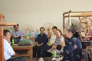 機織り機を使って製作する様子を見学し、製作工程や深織の会を立ち上げた経緯、苦労していることなどについて懇談しました。