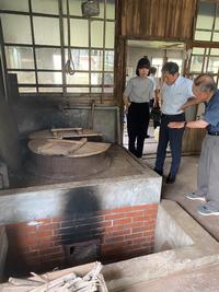 継承した経緯や苦労していること、紫雲石硯の歴史や硯を作るうえで大変なこと、東山和紙を作るうえで大変なことや今後の展開などについて懇談し、和紙共同作業場を視察しました。
