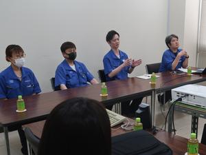 製品を作るうえで大変なことや気を付けていること、人材育成のために心がけていること、会社が成長していくための新しい取組などについて懇談し、社内設備などを視察しました。