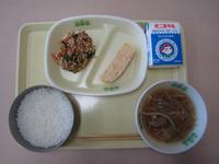 11月19日(水) ごはん、牛乳 鮭の南蛮揚げゆず風味 黒ゴマ和え たっぷり野菜のぽかぽか汁