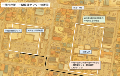 ※ 一関市役所本庁及び一関保健センターの駐車場を無料開放いたします。