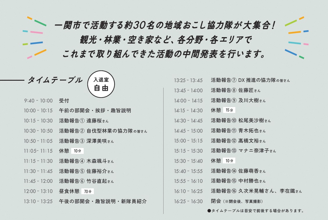 市内で活動する地域おこし協力隊の活動報告会を下記日程で開催します。