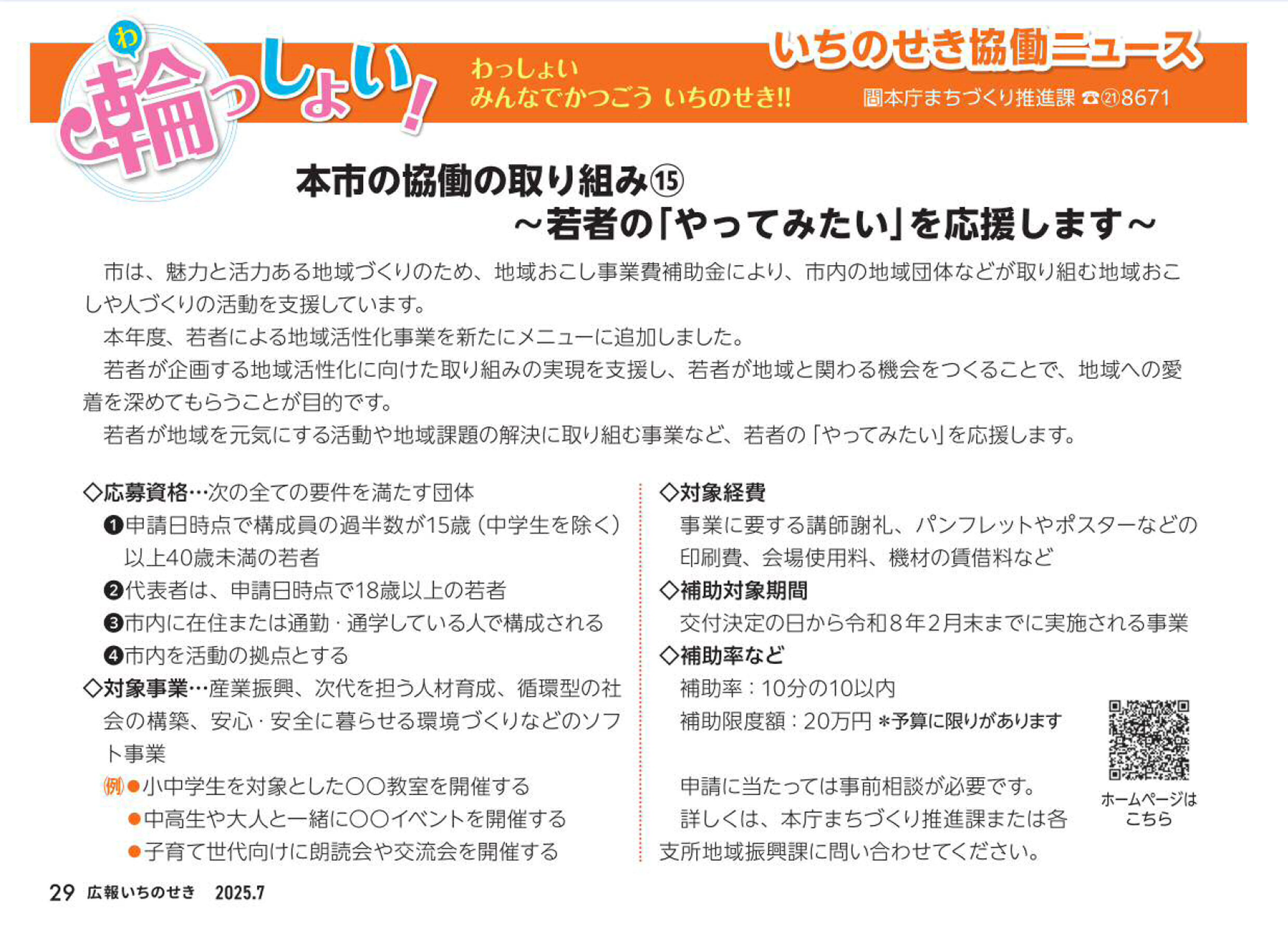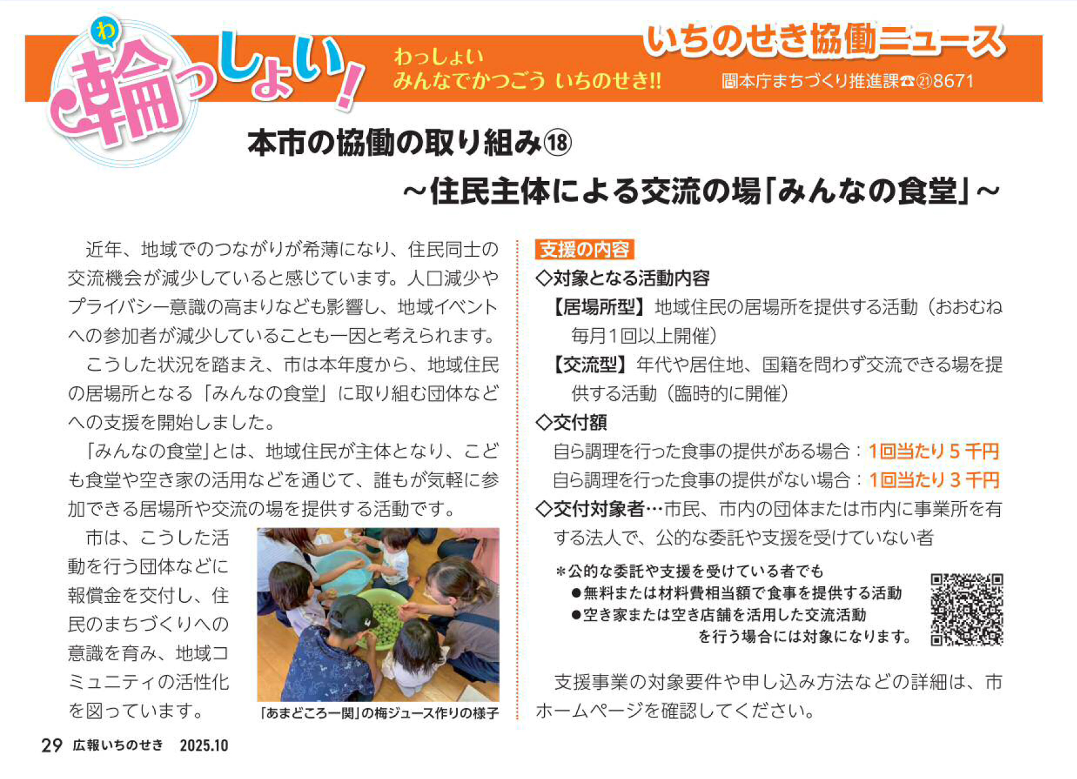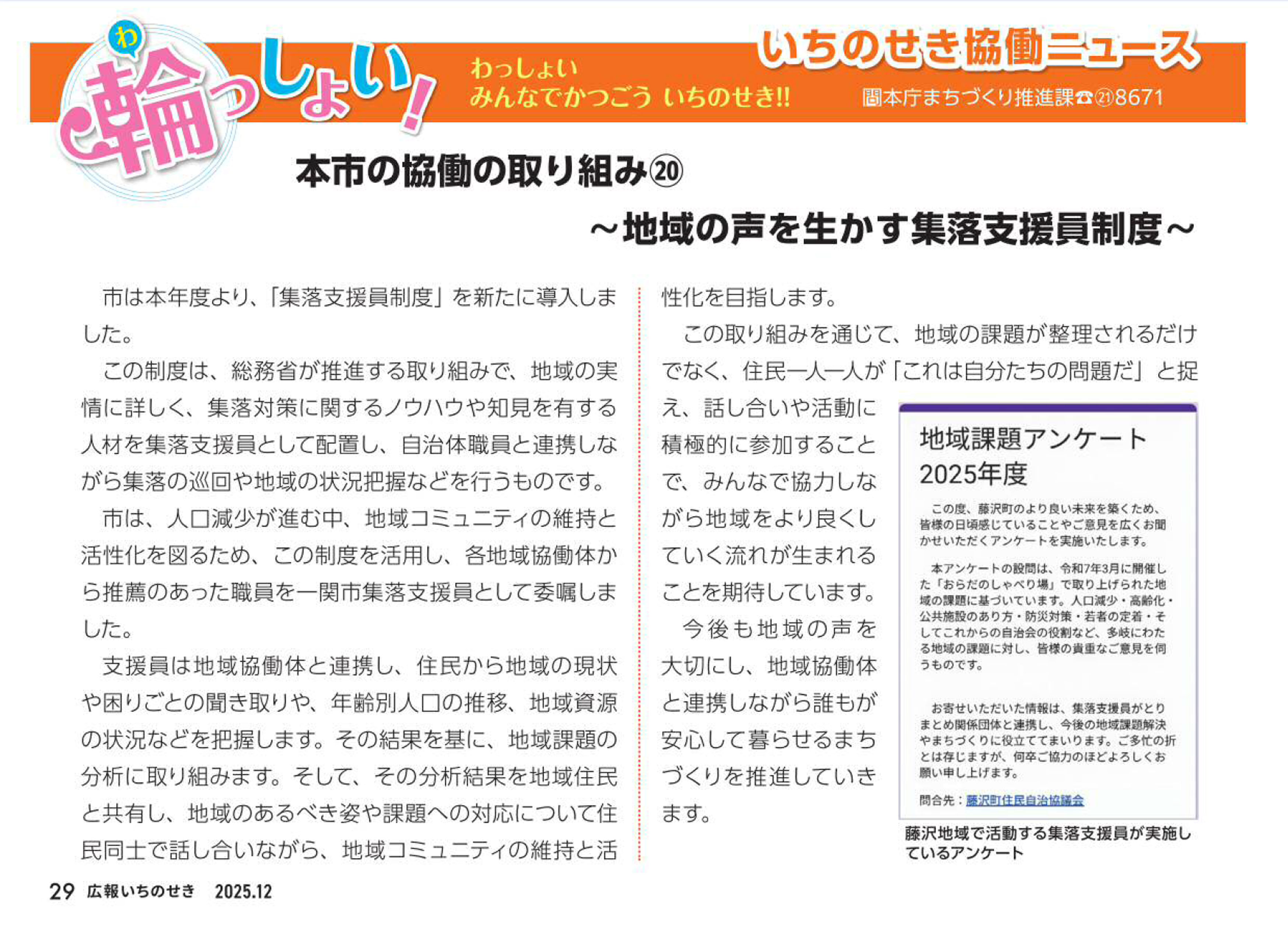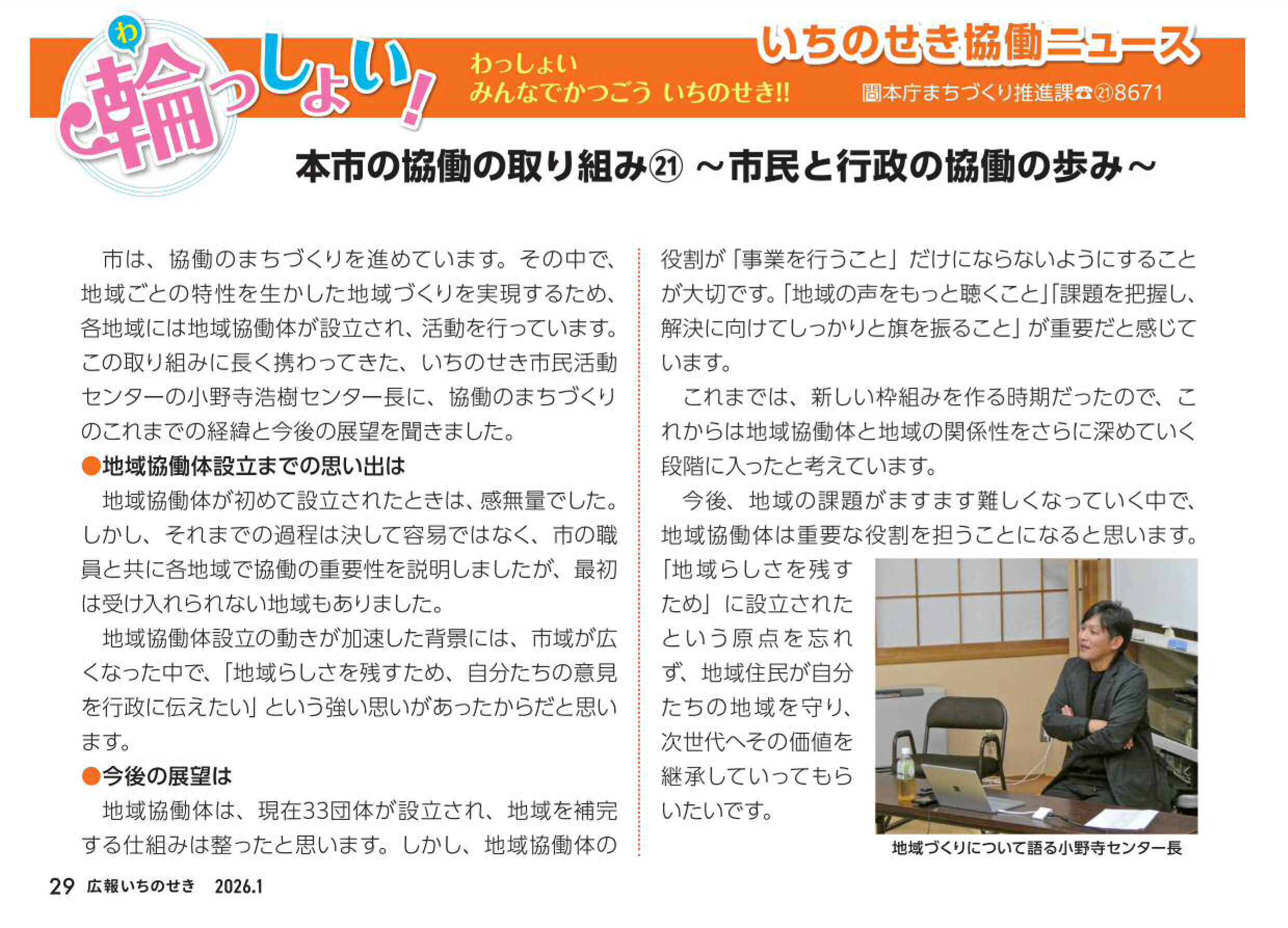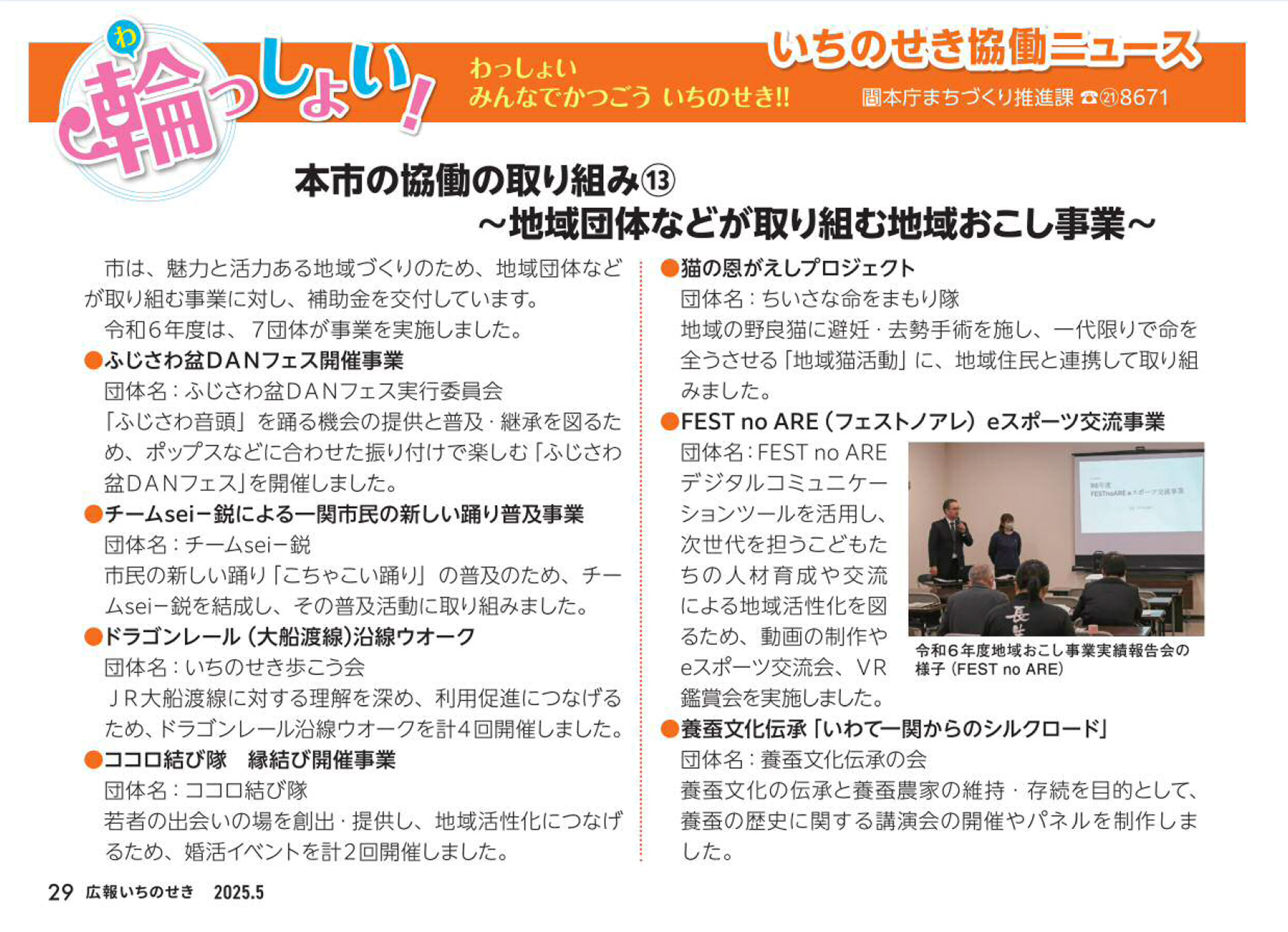 一関市は、市民の皆さんに「協働」について理解を深めていただくため、いちのせき協働ニュース「輪(わ)っしょい!」を発行し、協働のまちづくりに向けた地域の様々な取り組みを発信しています。こちらから過去の協働ニュースをご覧になれます。