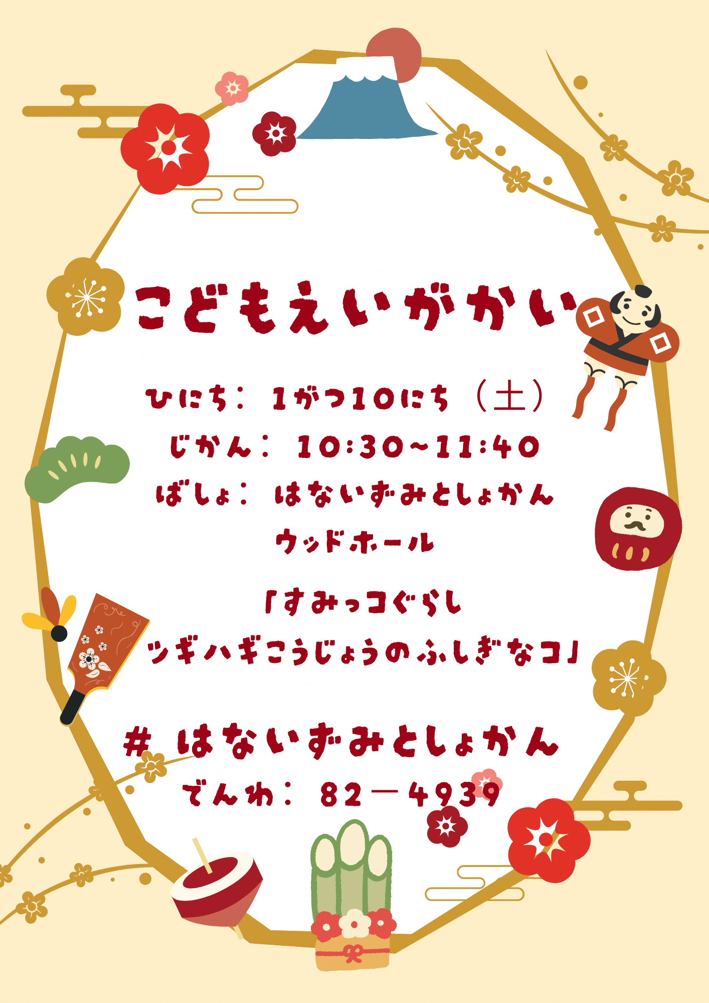 | 1月10日 | こども映画会 | ウッドホール 午前10時30分~午前11時40分 |