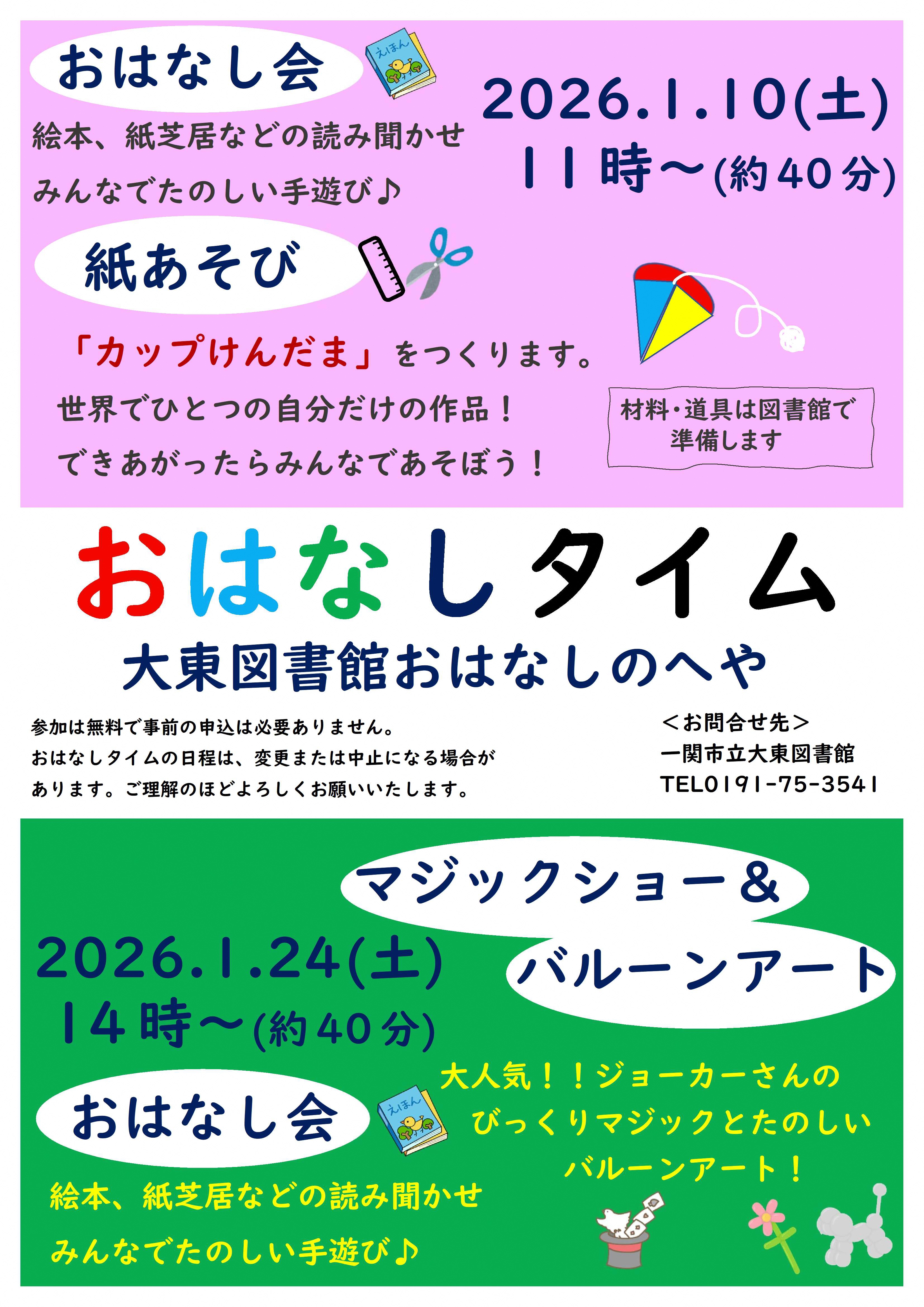 図書館職員による絵本などの読み聞かせと、「マジックサークル・ジョーカー」さんによるマジックショー・バルーンアート
